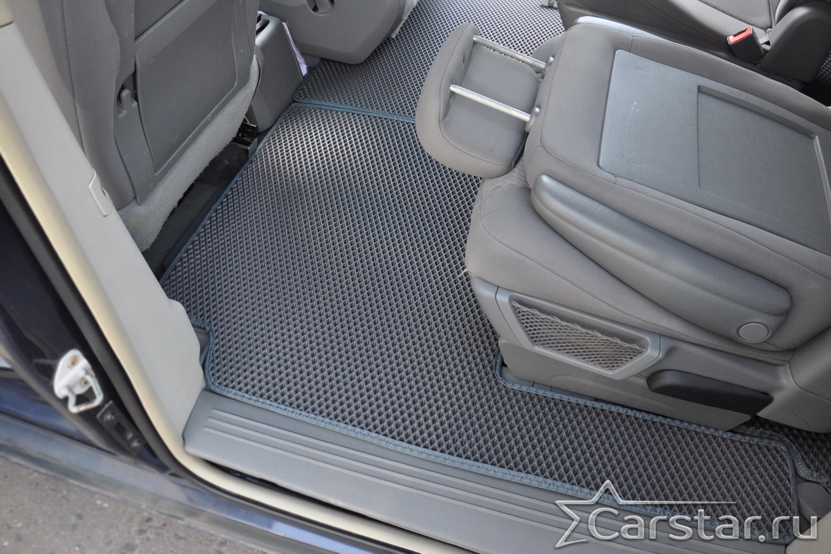 Автомобильные коврики EVA Dodge Grand Caravan V (2007-2020) 2 ряд: кресла 1+1 убираются в пол – это долговечные, удобные и универсальные аксессуары, которые помогут надежно защитить салон и багажник вашего авто от пыли, грязи и влаги в любое время года.
