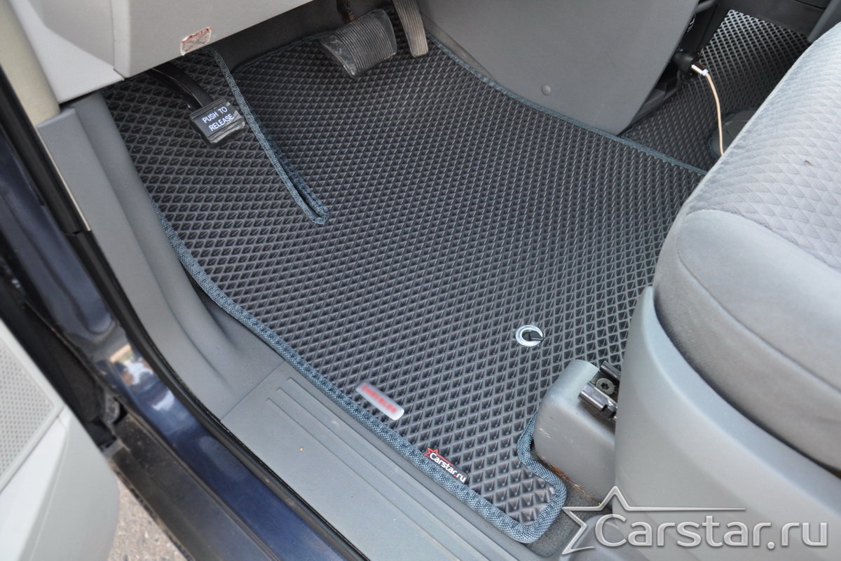Толщина ковриков EVA составляет 10-12 мм. Глубина ячеек 7-8 мм. Такая толщина ковриков позволяет им служить довольно долго, не протираясь до 3 лет. А благодаря такой глубине ячеек коврик EVA площадью 1 кв.м. способен захватить около 3,5 л жидкости, сохраняя в чистоте вашу обувь и обивку салона.