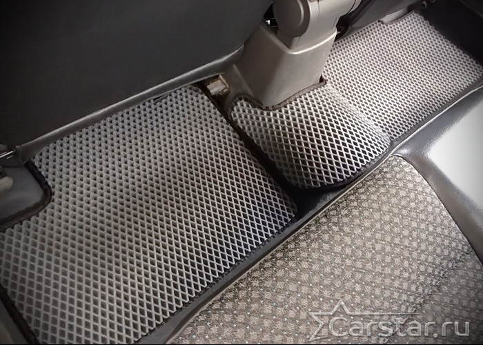 Толщина ковриков EVA составляет 10-12 мм. Глубина ячеек 7-8 мм. Такая толщина ковриков позволяет им служить довольно долго, не протираясь до 3 лет. А благодаря такой глубине ячеек коврик EVA площадью 1 кв.м. способен захватить около 3,5 л жидкости, сохраняя в чистоте вашу обувь и обивку салона.
