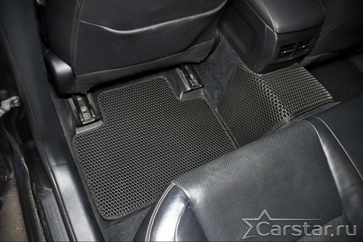 Толщина ковриков EVA составляет 10-12 мм. Глубина ячеек 7-8 мм. Такая толщина ковриков позволяет им служить довольно долго, не протираясь до 3 лет. А благодаря такой глубине ячеек коврик EVA площадью 1 кв.м. способен захватить около 3,5 л жидкости, сохраняя в чистоте вашу обувь и обивку салона.