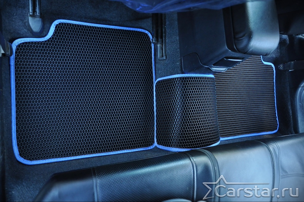 Толщина ковриков EVA составляет 10-12 мм. Глубина ячеек 7-8 мм. Такая толщина ковриков позволяет им служить довольно долго, не протираясь до 3 лет. А благодаря такой глубине ячеек коврик EVA площадью 1 кв.м. способен захватить около 3,5 л жидкости, сохраняя в чистоте вашу обувь и обивку салона.