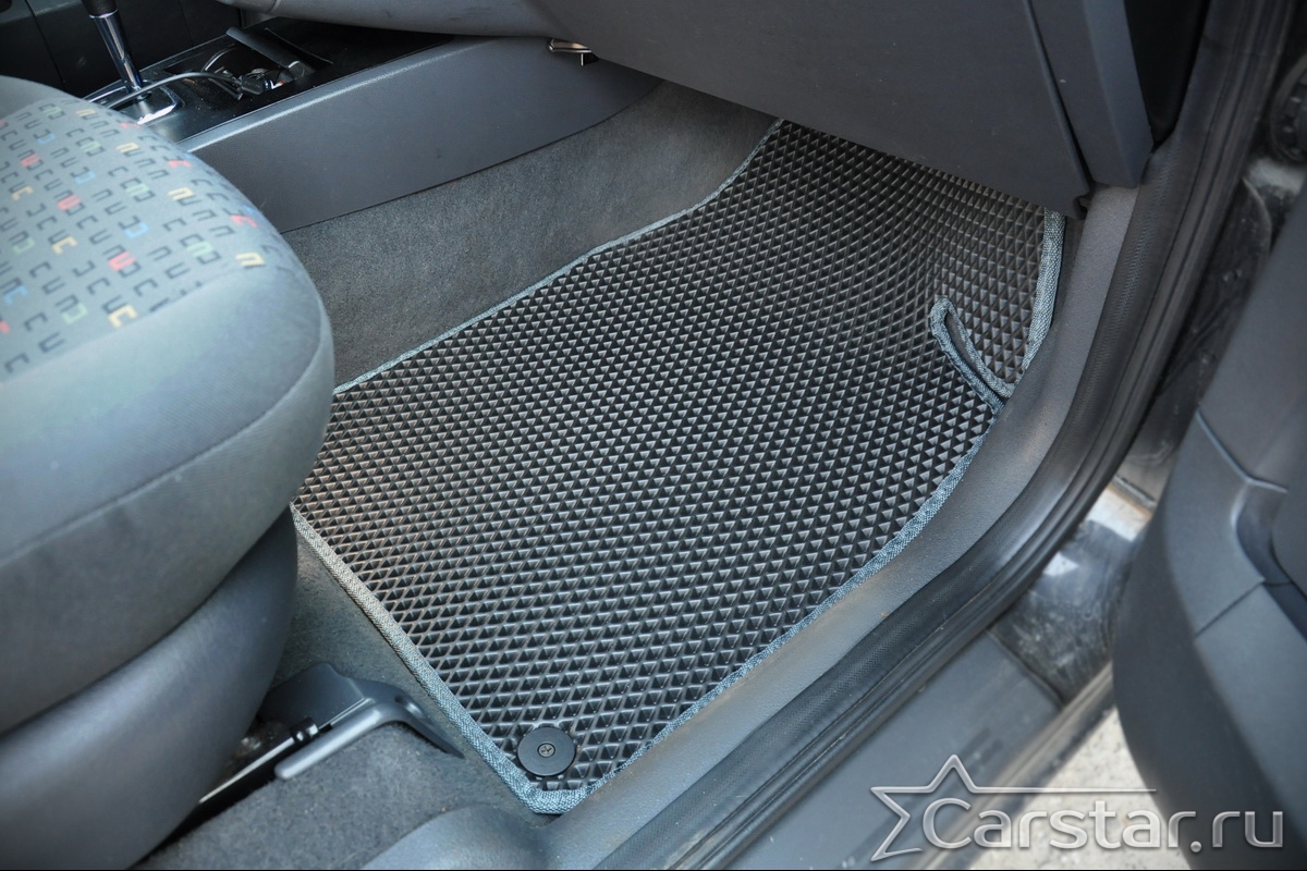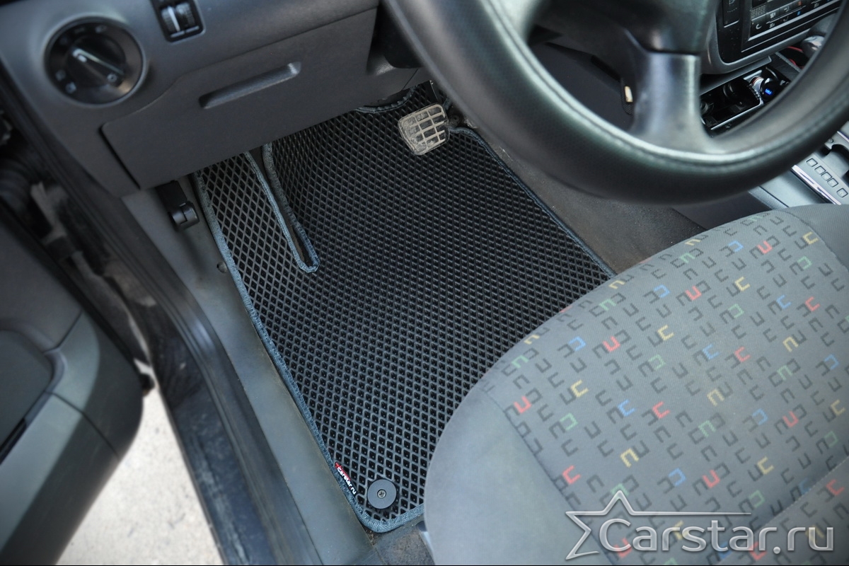 Толщина ковриков EVA составляет 10-12 мм. Глубина ячеек 7-8 мм. Такая толщина ковриков позволяет им служить довольно долго, не протираясь до 3 лет. А благодаря такой глубине ячеек коврик EVA площадью 1 кв.м. способен захватить около 3,5 л жидкости, сохраняя в чистоте вашу обувь и обивку салона.
