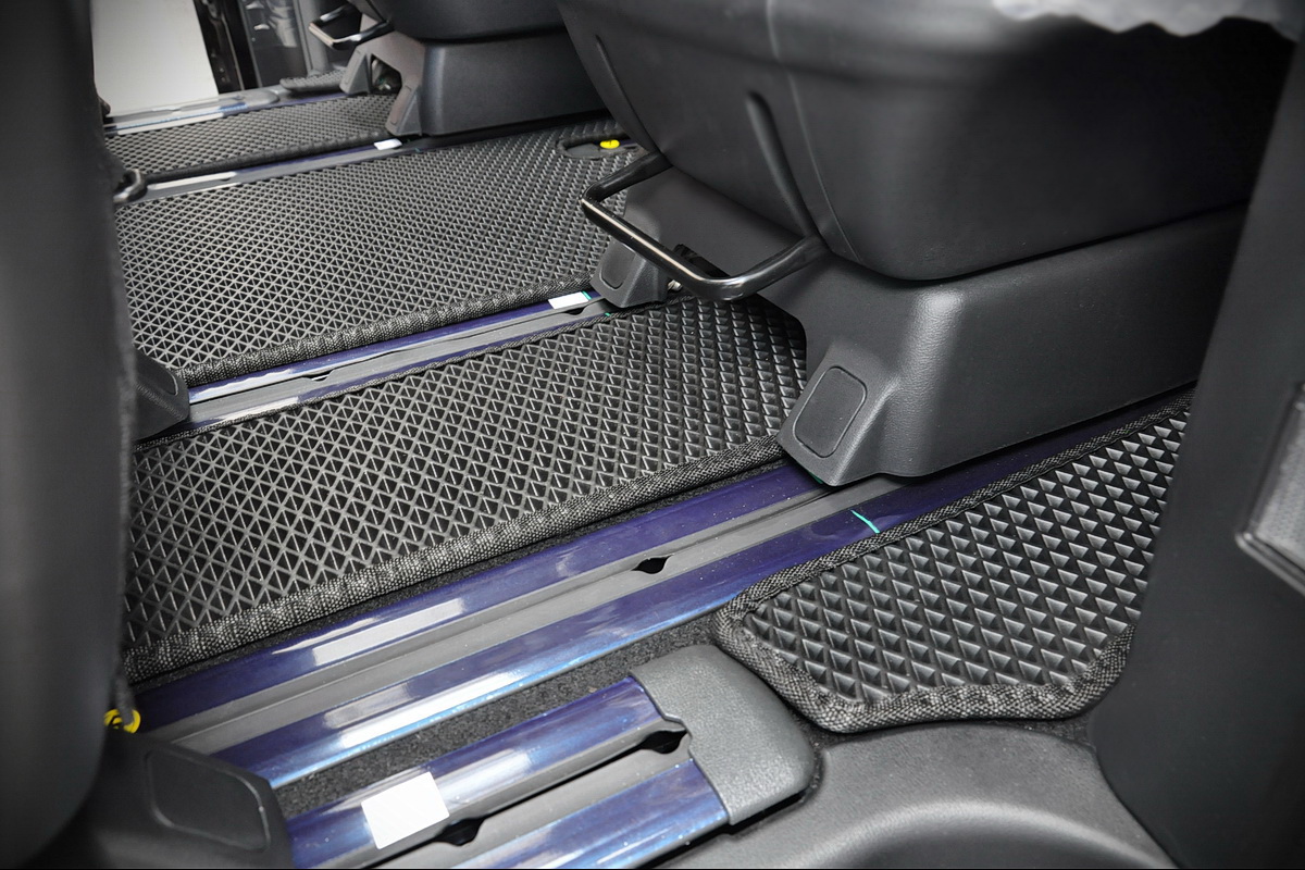 Текстильные коврики надёжно крепятся с помощью оригинальных систем фиксации. Обратная сторона имеет противоскользящее покрытие, что обеспечивает защиту от смещений и безопасность. Максимальное удобство достигается точными лекалами.