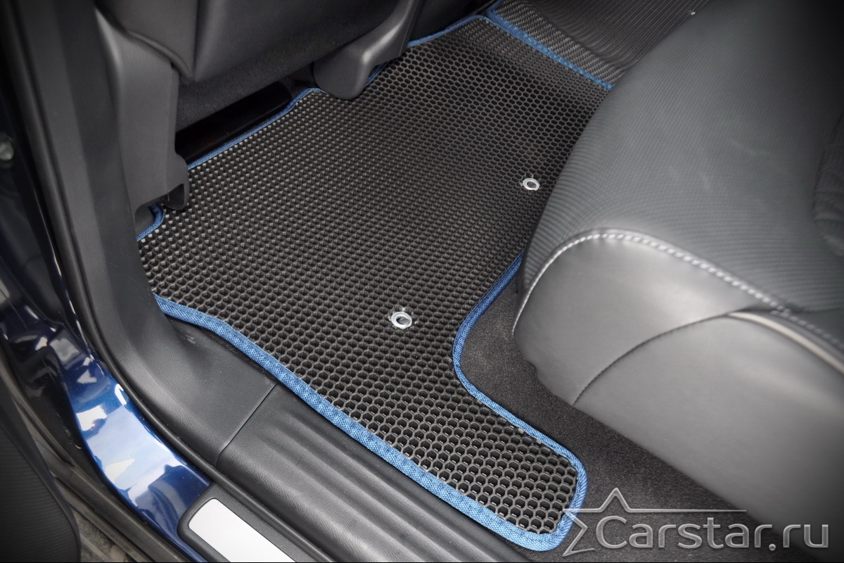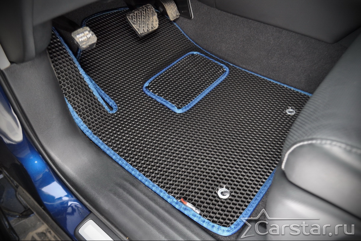 Текстильные коврики надёжно крепятся с помощью оригинальных систем фиксации. Обратная сторона имеет противоскользящее покрытие, что обеспечивает защиту от смещений и безопасность. Максимальное удобство достигается точными лекалами.