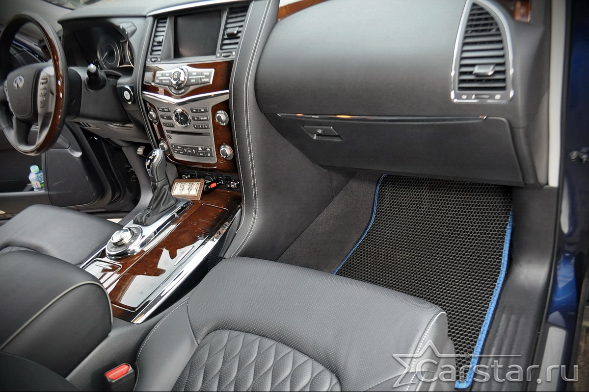 Текстильные автомобильные коврики Infiniti QX56 II 3 ряда (2010-2014) – это классический аксессуар, который обеспечит салону автомобиля неизменную чистоту, порядок и уют. Компания Carstar предлагает изделия из качественного ковролина в сочетании с полипропиленовым основанием на шипах, такая комбинация делает их прочными и водонепроницаемыми.