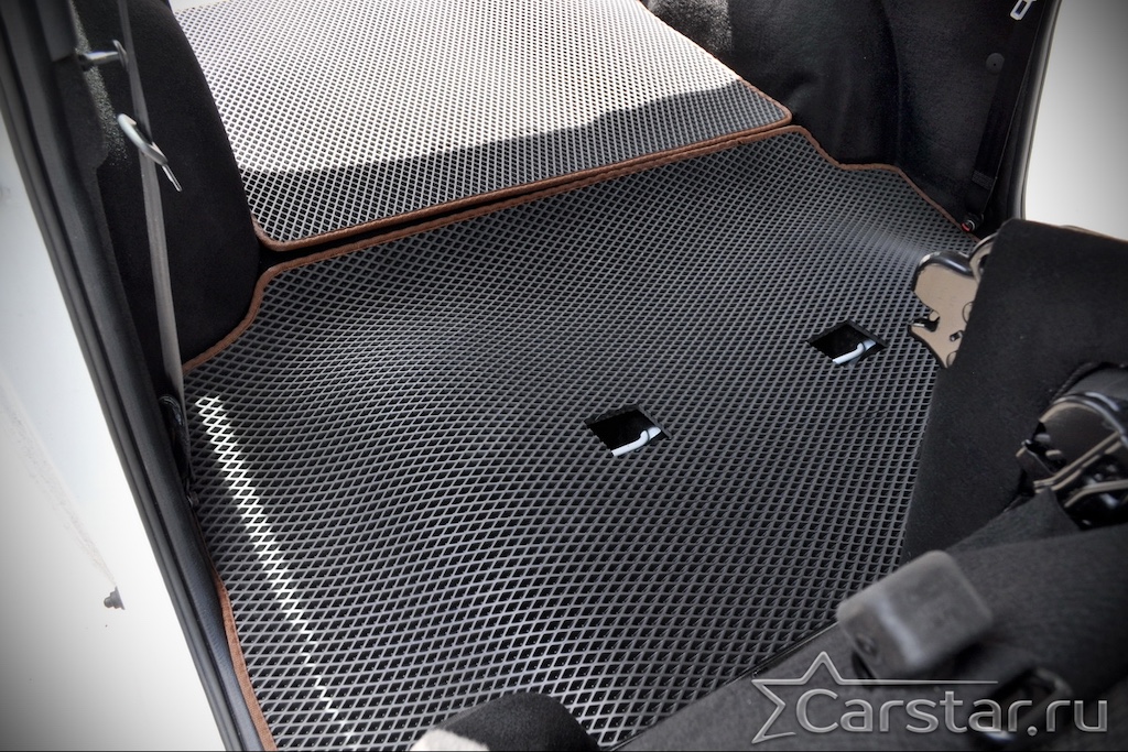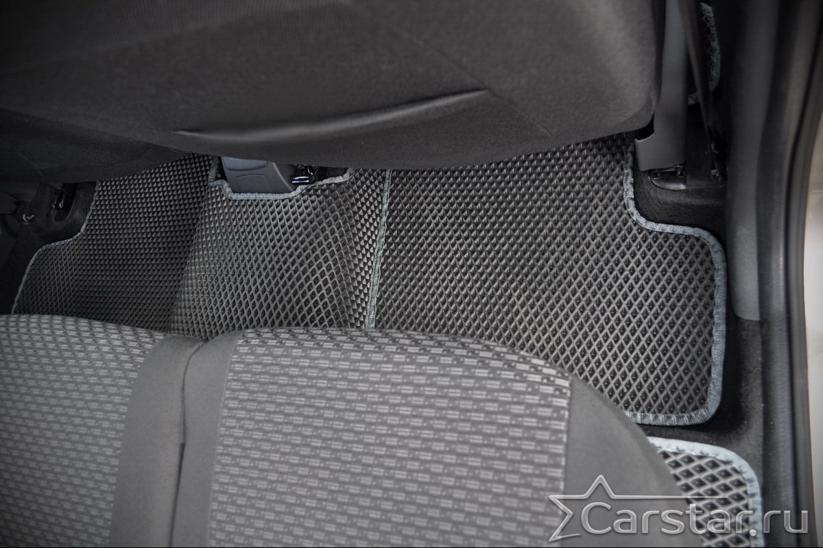 Текстильные коврики надёжно крепятся с помощью оригинальных систем фиксации. Обратная сторона имеет противоскользящее покрытие, что обеспечивает защиту от смещений и безопасность. Максимальное удобство достигается точными лекалами.