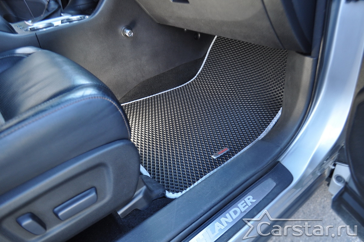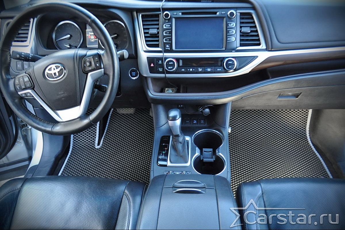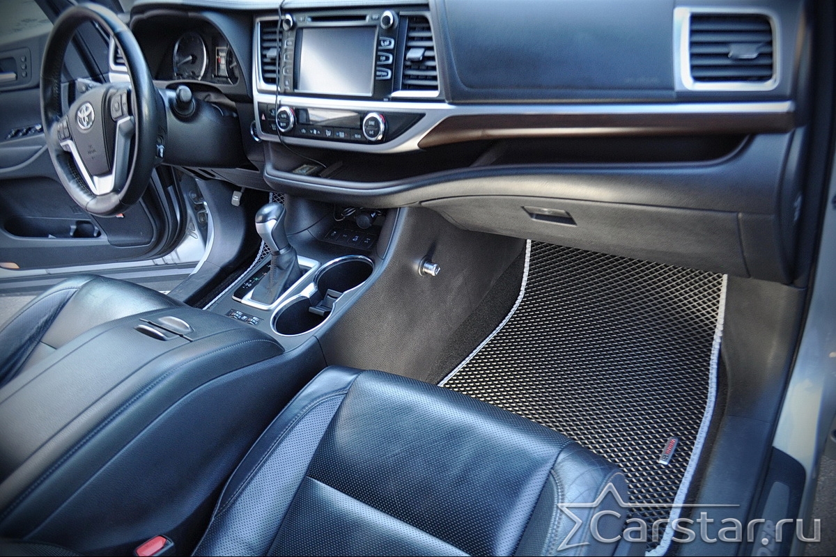 Текстильные автомобильные коврики Toyota Highlander III 3 ряда (2013-2019) – это классический аксессуар, который обеспечит салону автомобиля неизменную чистоту, порядок и уют. Компания Carstar предлагает изделия из качественного ковролина в сочетании с полипропиленовым основанием на шипах, такая комбинация делает их прочными и водонепроницаемыми.